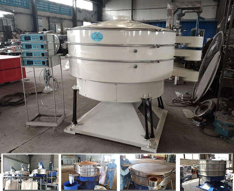 旋振篩可對500目內的粉末、顆粒及液體物料進行篩選,可用于處理淀粉、豆漿、醬油、味精、樹脂粉、涂料、中藥粉、電磁材料、塑料顆粒、洗衣粉等物料,產量在100公斤到3000公斤之間,采用直立式振動電機作為激振源,物料在篩面上做水平、垂直、傾斜的三次元運動,篩分精度高。旋振篩有碳鋼,不銹鋼,塑料三種材質可選,常見型號按篩面直徑分為400mm(15”)、600mm(24”)、800mm(31”)、1000mm(39”)、1200mm(47”)、1500mm(59”)、1800mm(70”)和2000mm(78”),也有1-5層篩網(不過三層篩網效果最佳)。