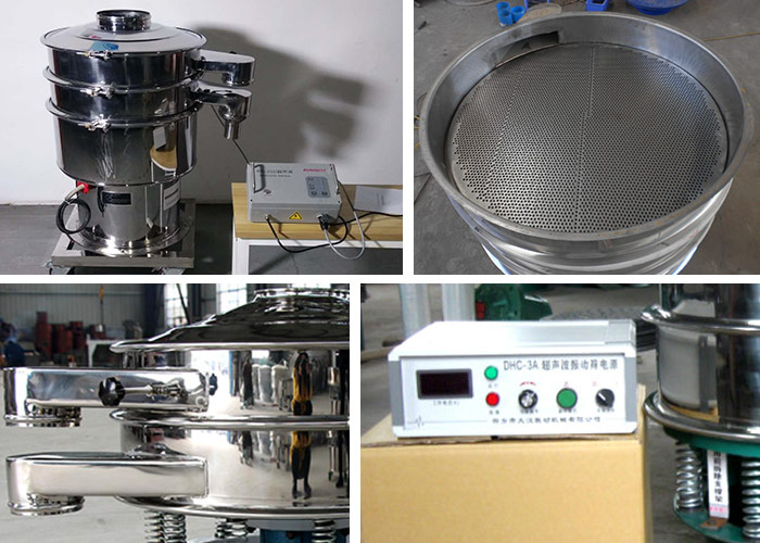 超聲波振動(dòng)篩是旋振篩的一種衍生產(chǎn)品,將超聲波控制器與振動(dòng)篩有機(jī)結(jié)合在一起,在多年的研究生產(chǎn)的旋振篩的基礎(chǔ)上,在篩網(wǎng)上面疊加一個(gè)高頻率低振幅的超聲振動(dòng)波,超微細(xì)粉體接受巨大的超聲加速度,使篩面上的物料始終保持懸浮狀態(tài),從而防止粘附、摩擦、平降、楔入等堵網(wǎng)因素,從而解決了強(qiáng)吸附性、易團(tuán)聚、高靜電、高精細(xì)、高密度、輕比重等篩分難題,使超微細(xì)粉篩分不再成為難事,特別適合高品質(zhì)、精細(xì)粉體的用戶使用。