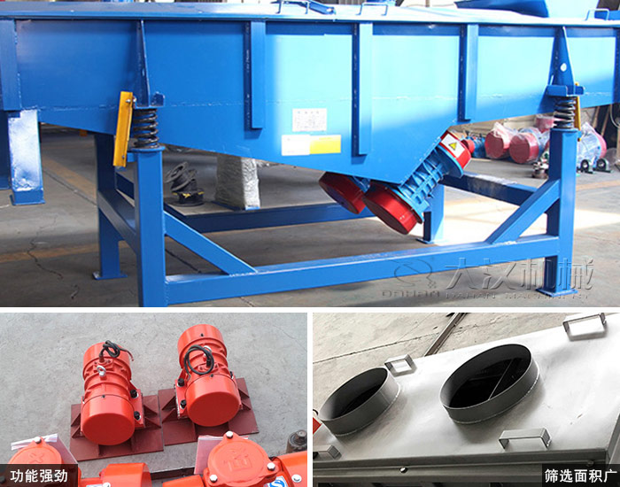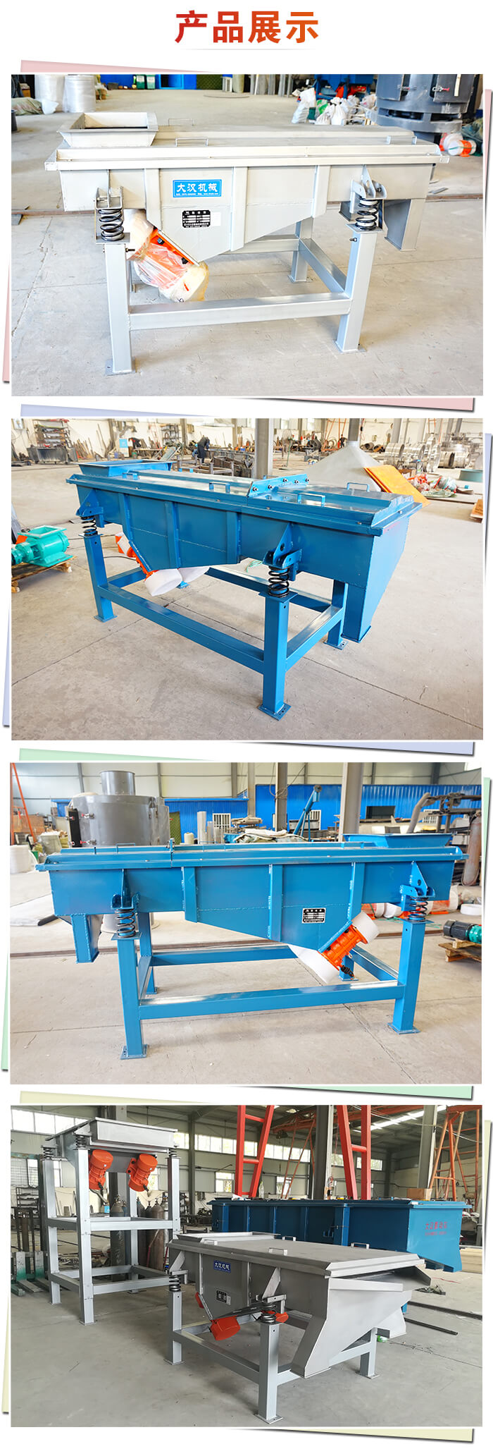 產品描述 :直線振動篩利用振動電機激振作為振動動力來源,使物料在篩網上被拋起,同時向前作直線運動,物料從給料機均勻地進入篩分機的進料口,通過多層篩網產生數種規格的篩上物、篩下物、分別從各自的出口排出。具有耗能低、產量高、結構簡單、易維修、全封閉結構,無粉塵溢散,自動排料,更適合于流水線作業。